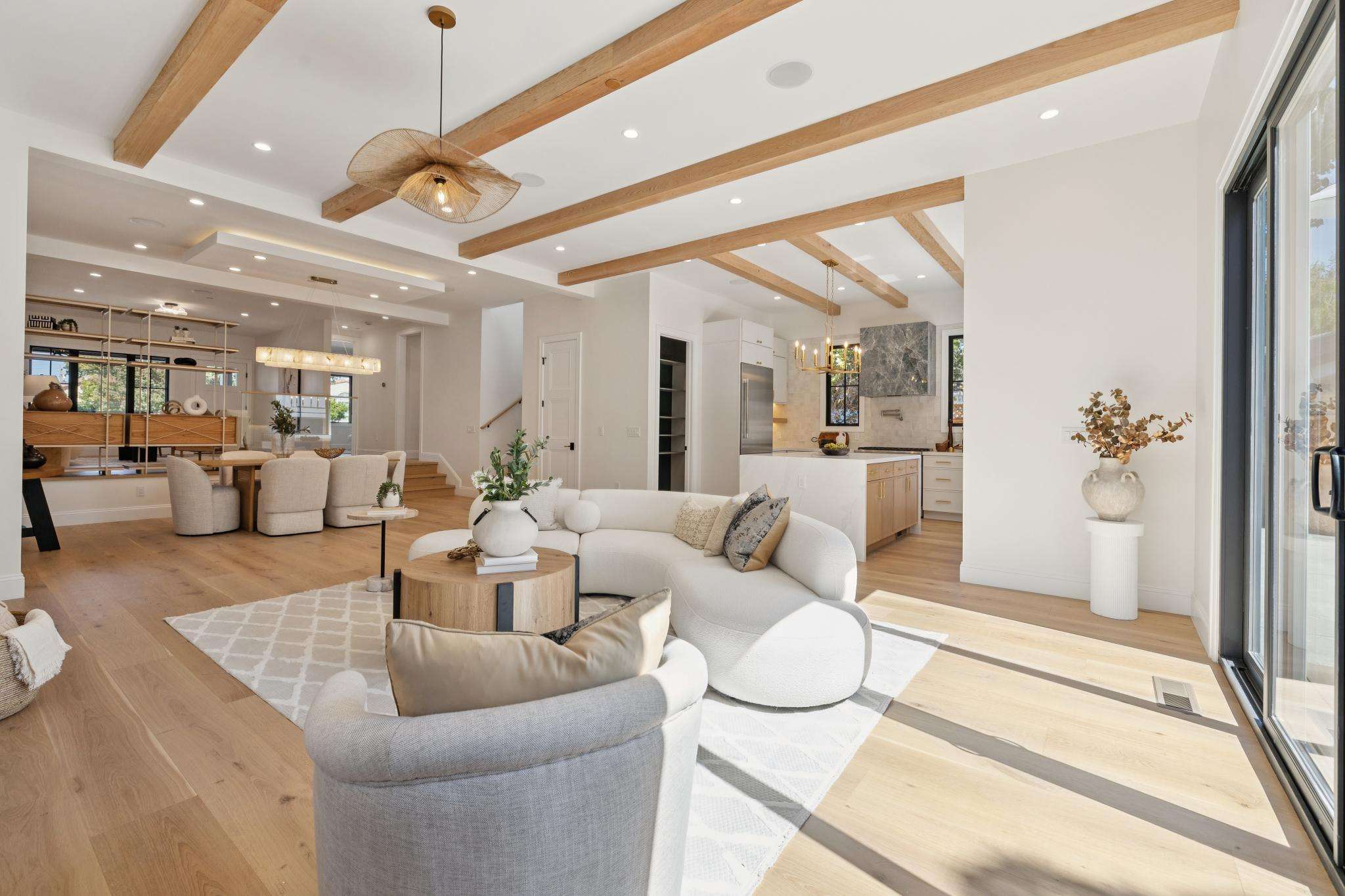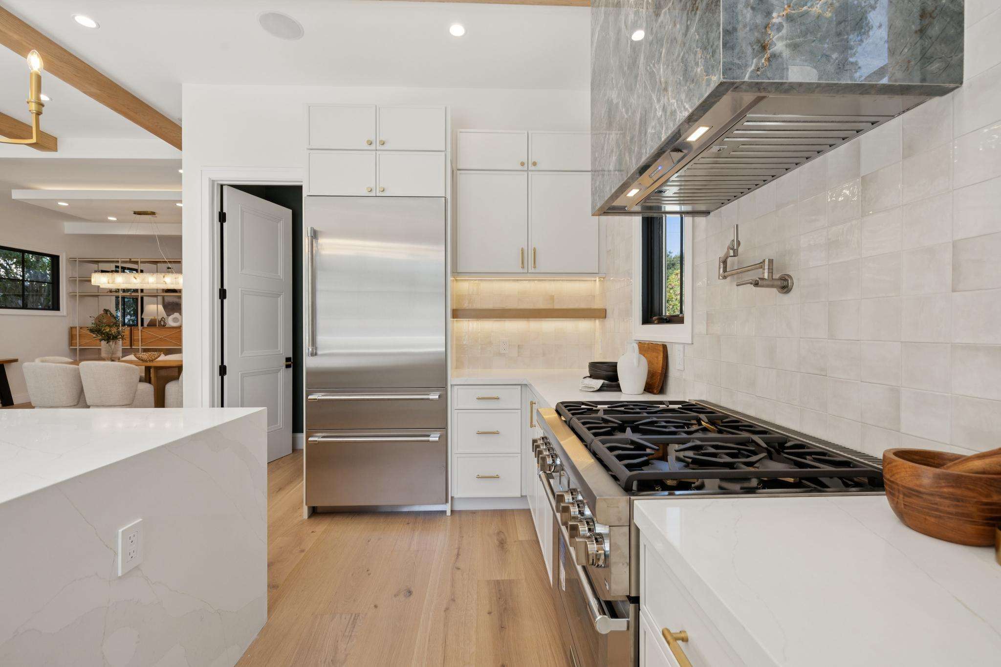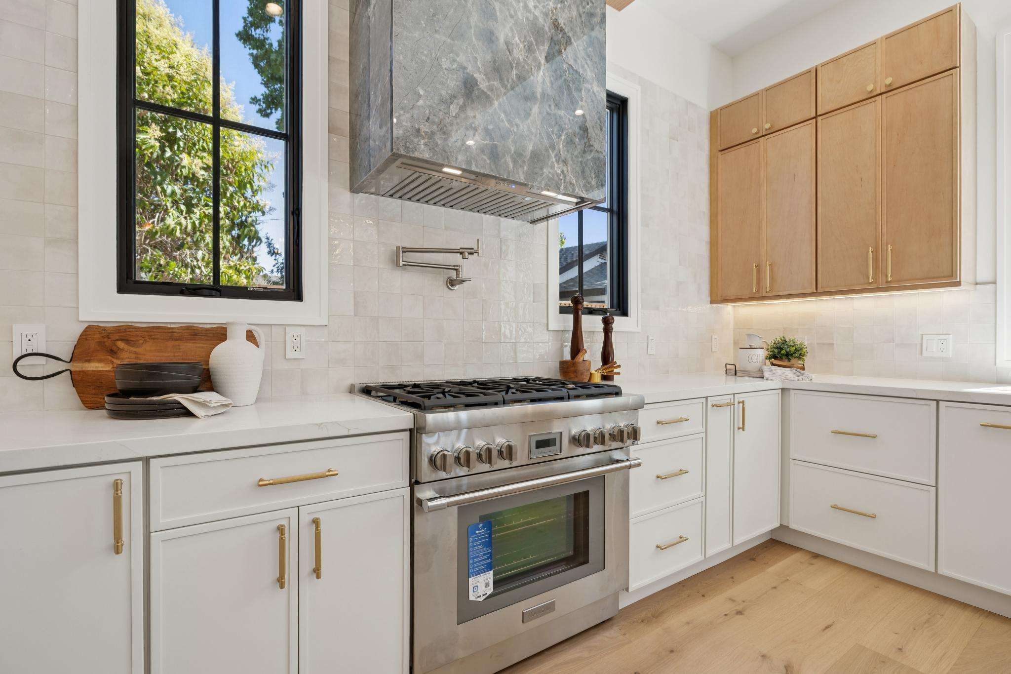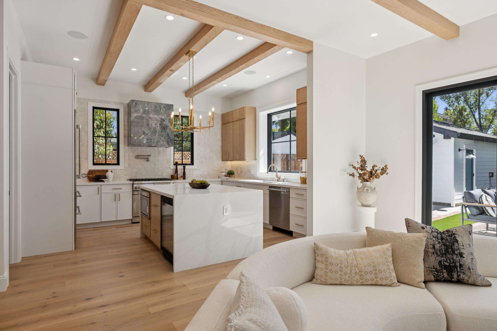 Welcome to Burlingame’s newest modern farmhouse, where timeless charm meets everyday luxury. Step inside and you’re greeted by nearly 11-foot ceilings that flood the home with natural light, creating a sense of openness that feels both grand and inviting. The open-flow floor plan makes entertaining effortless, with the living, dining, and kitchen spaces blending seamlessly together. At the heart of it all, the chef’s kitchen shines with top-of-the-line Thermador appliances, custom cabinetry, and a generous island that’s just as perfect for family breakfasts as it is for gourmet dinners with friends.